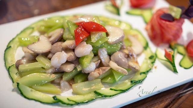 菜品太多,就不一一赘述了,总之,当季的螃蟹吃上了,美味的豆干吃上了。肉末塞面筋、水蛋羹蒸鲈鱼、芋头焖虾、菱角西芹炒虾仁……都是具有代表性的苏菜,最后,我的胃也失去了“呼吸”的空间。