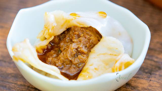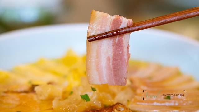 米粉与五花肉经过蒸笼里的一番“醉生梦死”,发生微妙的交互。被米粉滋味与高温蒸汽炼化后的五花肉丝毫没有油腻感,软烂到企图完整夹起一大块,简直是痴心妄想。
