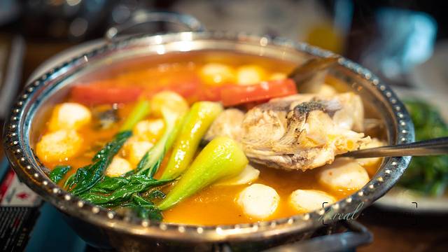 酸汤鱼头很开胃,吃完还能刷肉和菜。
