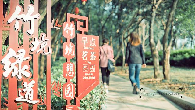 沿着香山梅园的入口右转向上,走不多远就能看到写着“香山竹境”的入口。之后便是笔直的竹子左右开道,风吹过竹林,“婆娑”着晨光的身影。一串串写着“茶”、“面”的大红灯笼是隐喻、摇曳的指路牌。此刻的我,好奇与期待就要溢出胸膛,无人知晓为了这碗面,我早起、沐浴、更衣、空腹,从远方赶来……