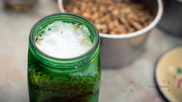 混合坚果粒、红枣,调好味的米粉与红糖“你来我往”交互了几层,最后再以松子与青红丝妆点“门面”。在笼屉上蒸的十来分钟里,香气不断刺激着我的鼻息。