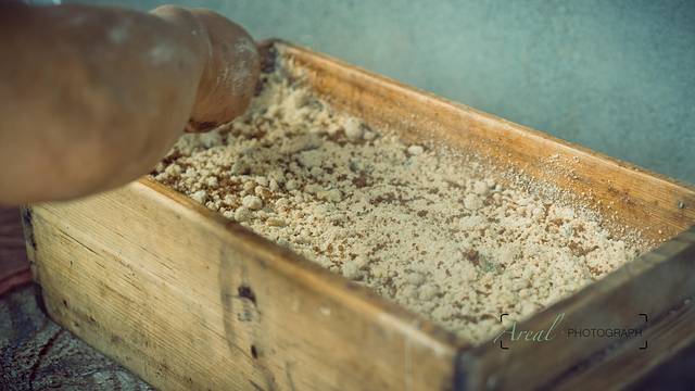 我们到的时候糕点师傅正在午休,见我们是特地慕名而来的,老板热情招呼,唤师傅赶紧起炉制作。这才有幸目睹松子糕团的制作过程。