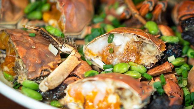 毛豆蒸螃蟹是很苏式的做法,同样鲜美。