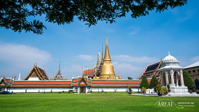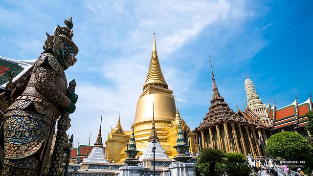 大皇宫又称大王宫,是泰国(暹罗)王室的皇宫。始建于1782年,经历代王朝不断修葺,如今依然金碧辉煌。若是坐船而来,说不定远远便能看到闪着金黄巨大建筑群。