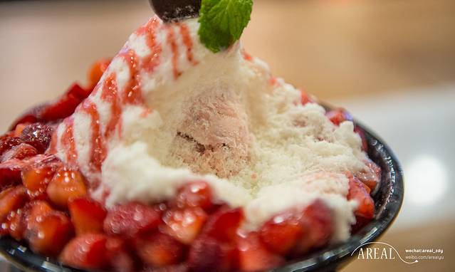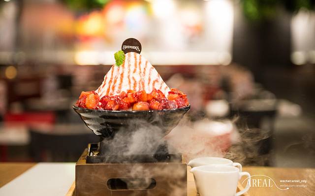 我和鱼鱼点了最当季的Very Strawberry Bingsu(超级草莓雪花冰沙),是最in最夯的冰淇淋冰沙系列产品,端上来的时候飘着烟雾,特别仙~~