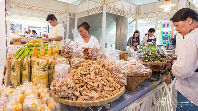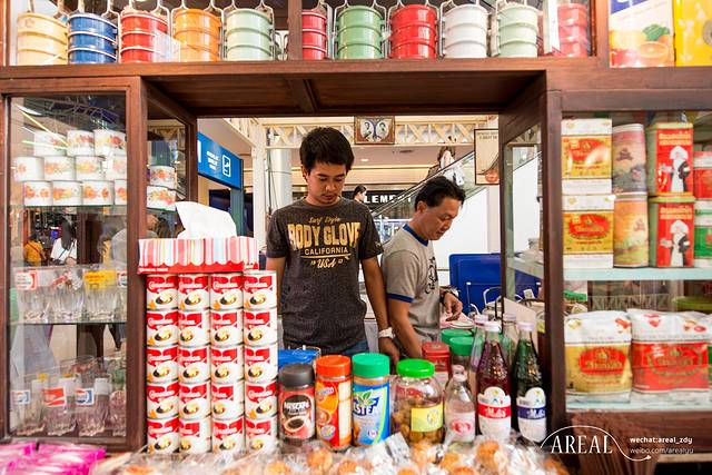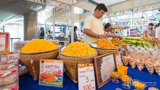 泰国的街头小吃比比皆是,商场里或商场前的广场也经常会有专门的小吃集市,从不愁美食欠奉。逛TERMINAL21时就刚好遇见一楼广场的集市,种类繁多、色彩艳丽(都是来自无害的天然色素)的小吃看的人眼花缭乱,口水肆流。