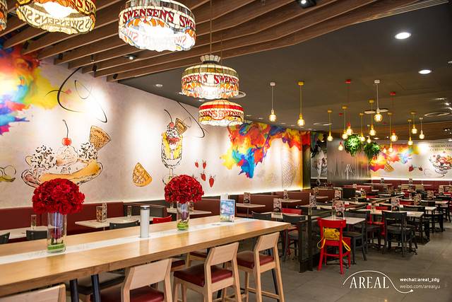 很喜欢店里的环境,明艳而活波的红色主调,点缀彩色悦动的灯饰与墙体,感觉四周流动着冰淇淋的甜蜜,连空气也被渲染。