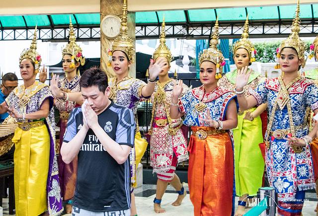 在四面佛旁边有付费的歌舞服务,可以付不同的价 格请相应人数的舞者在你面向四面佛跪拜、祈愿时跳舞。