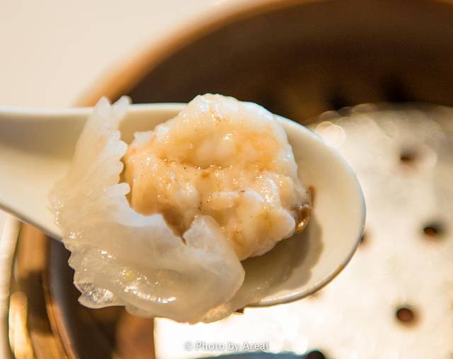 虾饺皮薄,粘糯适中,有糯感却不粘牙,筷尖不小心沾破了皮,竟有清澈汁液顺势淌出。