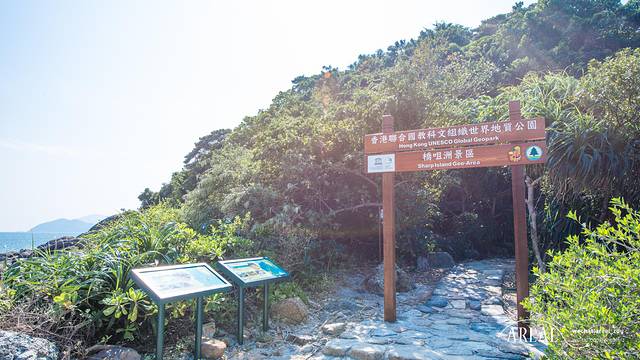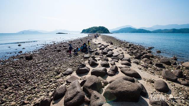 桥咀洲是香港联合国教科文组织世界地质公园景点之一。这个又细又长的岛屿不仅有1.4亿年前形成的地质奇观,还有绿意盎然的大自然美景,就像是小朋友的天然游乐场,值得用一天的时间慢慢欣赏海岸,岩石奇景。涨潮后,链接两岛之间的小路会神秘消失,退朝后又会逐渐浮现……