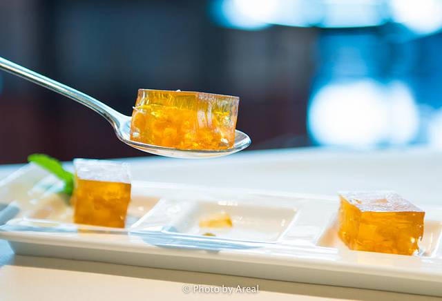挞底的酥脆与黄油香气match不差毫厘,微甜的味道使所有气息都完美“联姻”。一整个鲍鱼置于最顶,鸡粒、鱼肉、香菇粒煨出咸鲜。一口下去三重口感与味觉,层层攀登,并无此消彼长,咸鲜甜几味水乳交融,登峰造极。