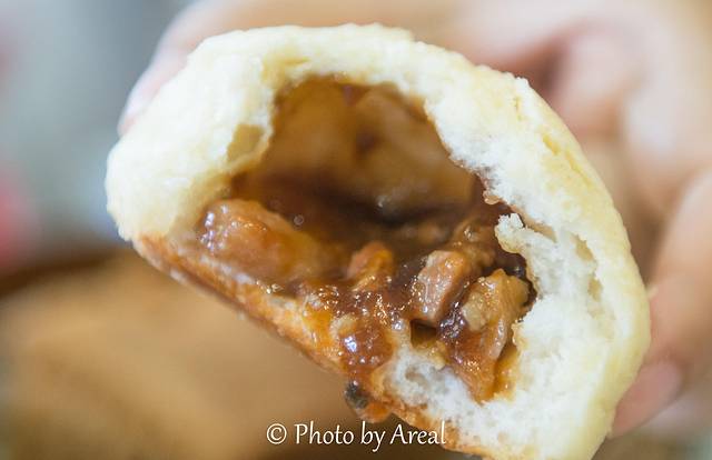 菠萝包的外皮一碰就掉渣,一口咬下去,半流质的内馅冲破酥皮向嘴巴翻涌过来,具有微咸口味的叉烧肉与甜酥的外皮相得益彰,丝毫不油腻。