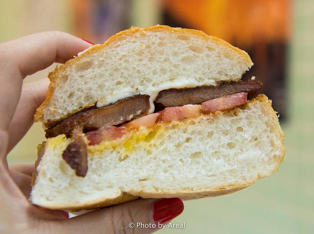 *与澳门猪扒包不同,这里的面包松软,猪扒有番茄打底,美奶滋淋酱,口感较为细腻。