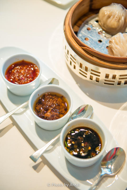 *上点心前,先上酱油辣椒、XO酱、辣椒酱三种酱料。