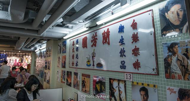 行近兰芳园便已是浓郁的古早风,时光瞬间被拉回几十年前,店里的墙面上贴着很多谭咏麟的照片及宣传画,我两次前去皆是如此,3年前没做半点改变。