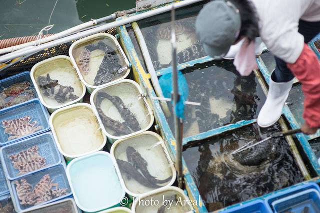 西贡的原住民很多人,就连很多年轻人也不太能听懂普通话。这边是在船上兜售各种新鲜渔获的商贩,以及干货的摊位,另一边就是各种海鲜酒楼。