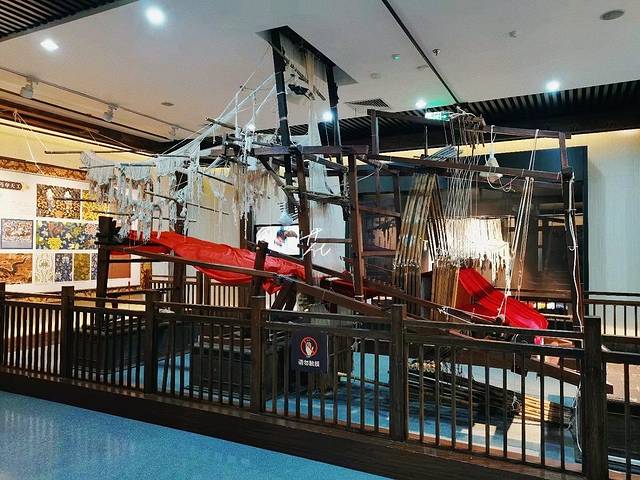 ❗云锦织机为大花楼木质提花织机,体积庞大,每台织机顶上要有“拽花工”,下面要有织手,共同协作完成。