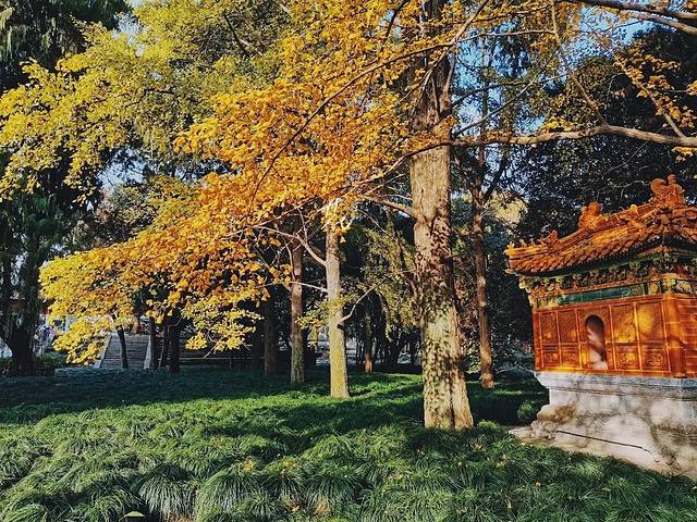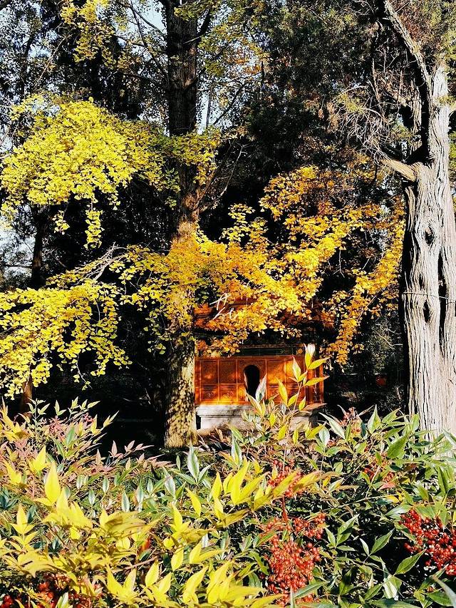 ✔️神帛炉东西各一座,由黄绿琉璃件组成,用于焚烧祭祀所用的神帛和视版。在银杏叶的映衬下拍照特别好看👀。