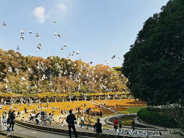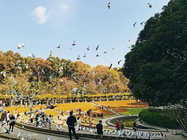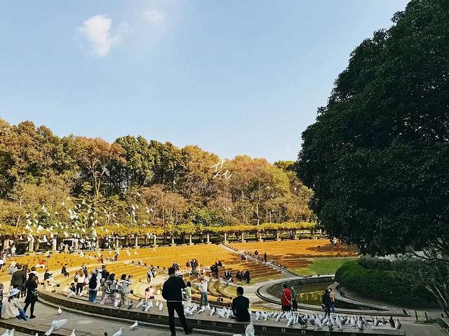 音乐台,紧挨着中山陵,里面都是鸽子🕊️。这里的鸽子都不怕人,主动找人讨吃的,人与鸽子和平相处。