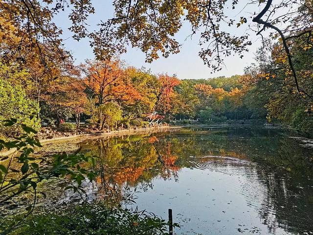 我是11月8号去的,叶子没黄透,有些失望😞。银杏树叶已经泛黄了,其他树木还是绿色存在,此时的清凉山公园黄,绿相间,色彩斑斓。也是很好看。