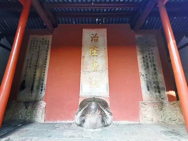 ✔️碑殿,建于1699年,是康熙第三次南巡谒陵,见倾塌,下旨“江苏巡抚宋牵、织造郎中曹寅(曹雪芹祖父)会同修理”,并且制碑御书“治隆唐宋”,碑两侧是乾隆皇帝的题书。