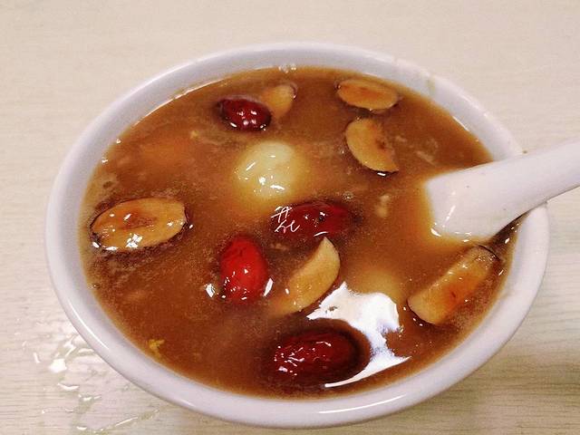 汤圆好吃,食材好,料足。汤圆软糯,皮粘牙,馅料软,咬一口往外流。汤底红枣选的是新疆红枣,桂花就是南京本地桂花,芝麻是白芝麻,酒酿配汤圆里简直就是完美。