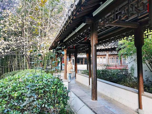 江宁织造博物馆融合了江南建筑风格的白墙灰瓦,假山翠竹,回廊池塘,还兼具现代的下沉式园林设计。行走其中,有点游走在盆景里的感觉。