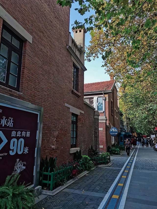 进入1912,你会发现有别于其他地方的是地上有一条小铁轨,时不时的有一列时光小火车经过,有点游乐场的感觉。