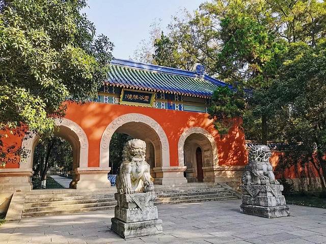 灵谷寺植被茂盛,整体布局错落有致。灵谷寺的历史,用命运多舛,几经变迁来形容一点也不为过。灵谷寺始建于南朝梁代,原址在钟山南麓独龙阜上,寺庙是为了纪念“真正的济公”-南朝高僧宝志和尚修建的,包含志公殿、志公塔和三绝碑。