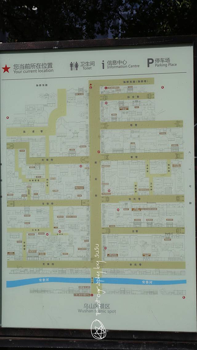 正东正西的方正走向,大树林立。东侧有七巷(杨桥巷、郎官巷、安民巷、黄巷、塔巷、宫巷、吉庇巷),西侧有三坊(衣锦坊、文儒坊、光禄坊)。