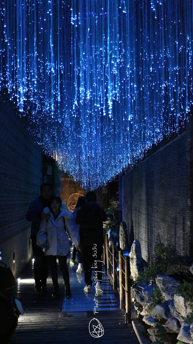 夜晚的钢琴弄才是它真正的样子,抬头是细密北极星灯,脚下钢琴的琴键随着脚步发光,互动景观,与传统文化形成了交汇,谁不想来踩一踩,拍个美丽的星空呢。