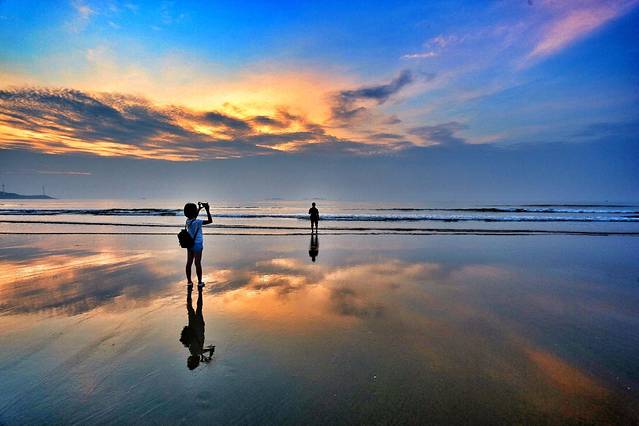 清晨五点半大海苏醒,太阳跃出海平面之前平缓的沙滩上倒影着香草色的天空,仿佛 玻利维亚 天空之境的盛况,行走在水镜之上看漫天色彩瞬息万变。