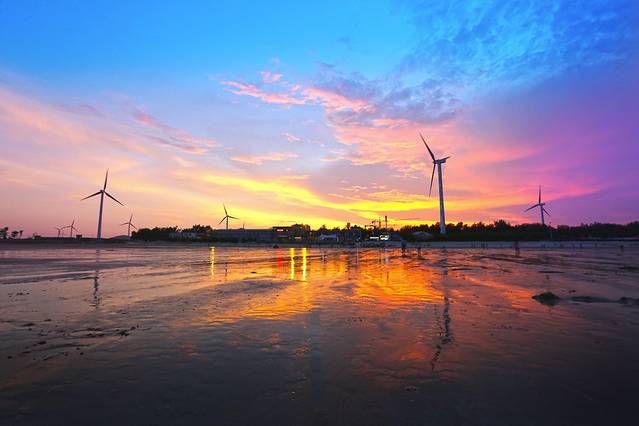 酒店所处的海滩是观看日出的绝佳场所。日落则在半岛的另一侧。原本以为与落日无缘,但是退潮后的沙滩延绵500米,回望沙滩,风车和天空的火烧云热烈的染红了半个天空让人陶醉。踩着晚霞,在风车下酒店的户外餐厅点上满满的美食和啤酒,开启夜晚生活。