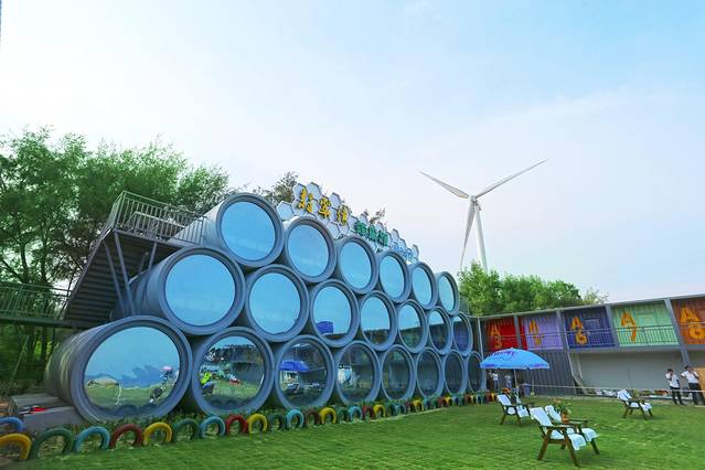 蜂巢酒店在国内还属首创,巨大的水泥管房间像极了蜜蜂的巢穴。房间里床直接靠着巨大的圆形玻璃,海景近在眼前,有着非常奇妙的住宿体验。