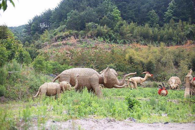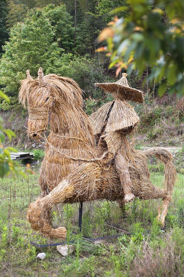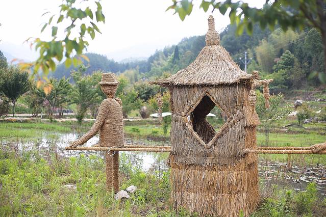 【人与自然】古溪星河传承稻草文化,稻草文化在中国有着上千年的文化积淀,是中国数千年农耕文明中乡土气息最浓郁的元素符号之一。铁丝与稻草相结合而制成的各类艺术造型散布在农谷内的农田、菜地、山谷、溪滨和丛林,将稻草与创意结合。