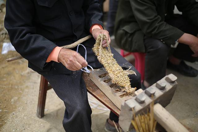 还可以观看到制作【糍粑】过程,传统编草鞋的制作。