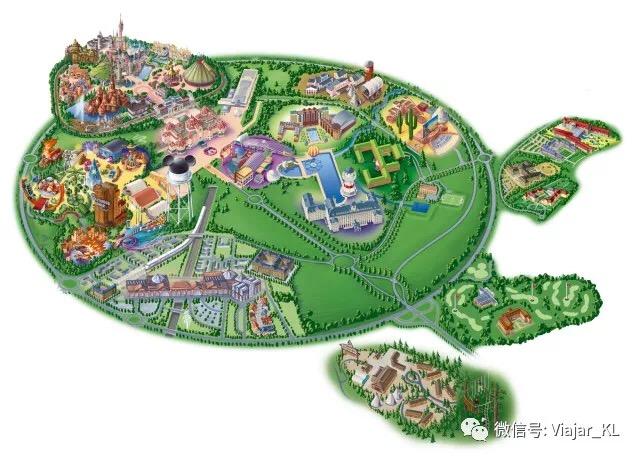 巴黎迪士尼称做是Resort,就是一个很大的度假村,所以不光有乐园,还有很多别的设施,实际上巴黎迪斯尼分为5个区域,分别是: