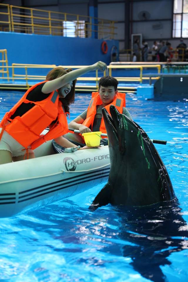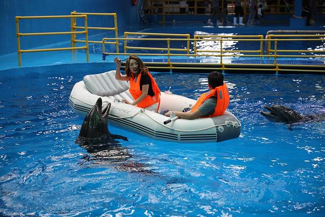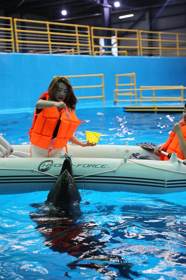 海豚之家2点30开放,建议大家提前乘坐酒店的摆渡车过去,人挺多的提前10分钟过去比较好,就不用等太久。进入海豚之家需要穿专门的鞋套再经过两道水消毒以后就可以见到海豚了,第一次见到那么多海豚的我惊呆了,海豚宝宝实在是太可爱了。因为我们的房间是包括门票的就可以看海豚表演,之后和海豚的亲密接触是需要单独付费的,100多一个人,还是挺划算的,可以有和海豚宝宝亲密接触的专属时间,有给海豚喂食和拍照,身边都有专业的海豚饲养员,全程陪同、指导,觉得很安心。Ps.大家在和海豚互动的时候一定要遵循饲养员的指挥不要擅自乱来哦。