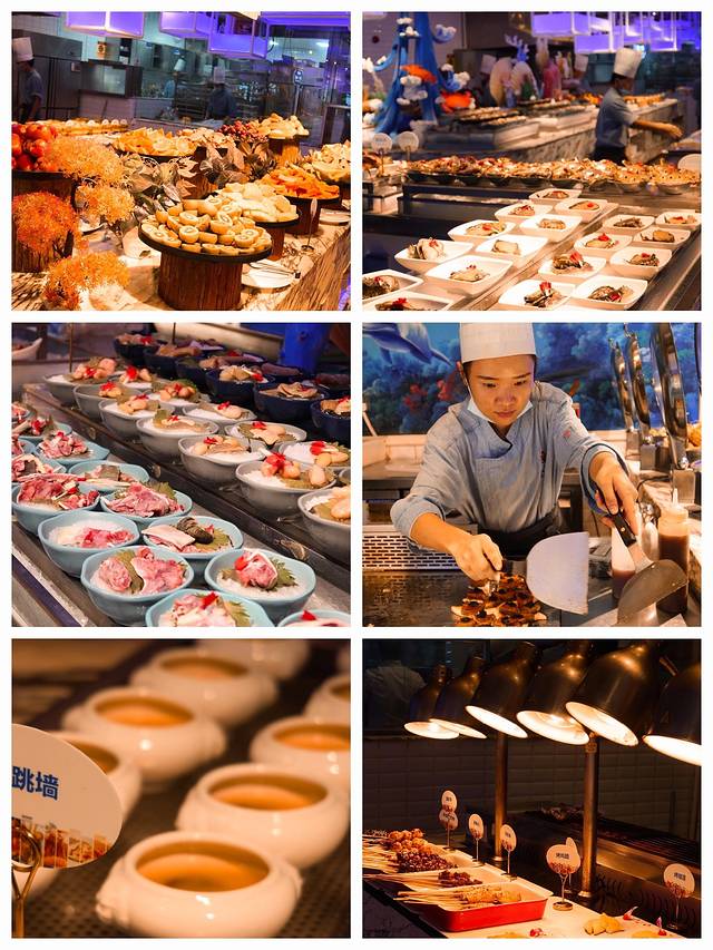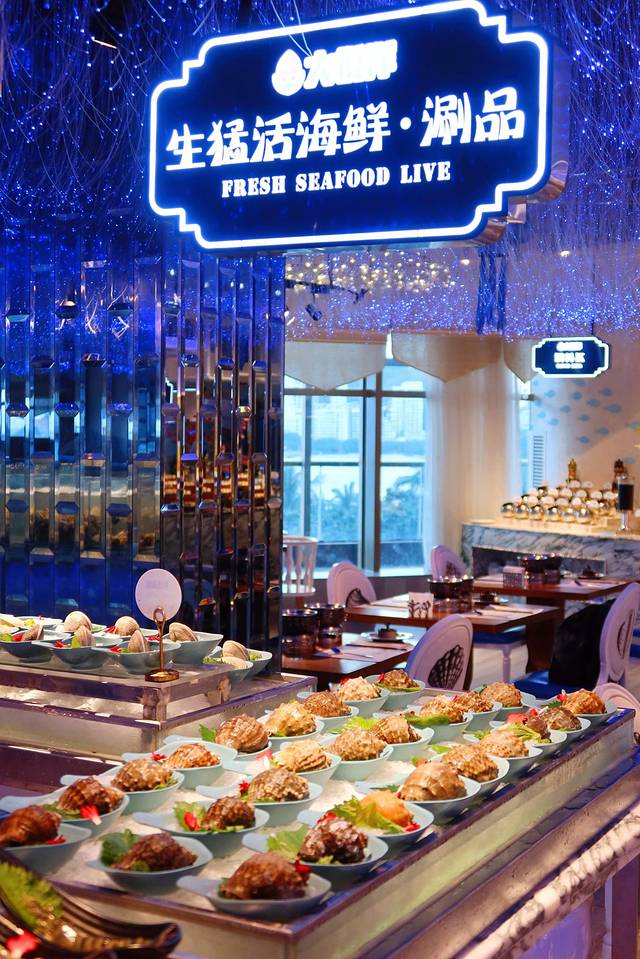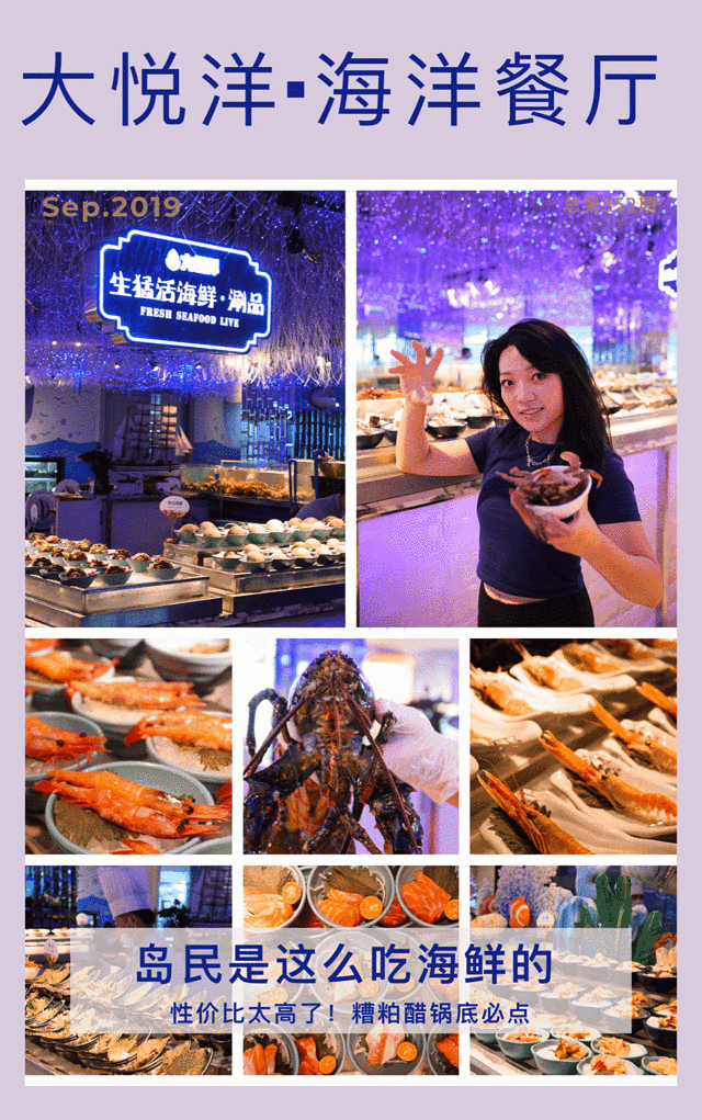 从生猛的澳龙到可爱的敖虾,各种海鲜不限量供应,完全不用担心花了钱却吃不到,工作人员第一时间会补足食物。