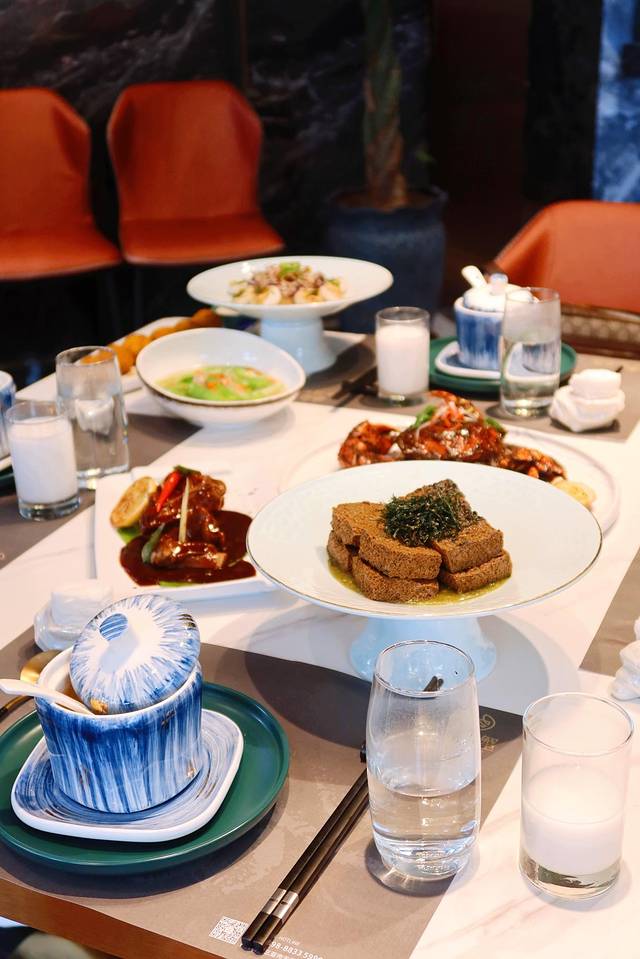 主打新派海南名菜,点了很多菜几乎没有一道踩雷的,我推荐一下我最喜欢的两道 玫瑰露黑糖豉油鸡、山葵酱焗青虾球。