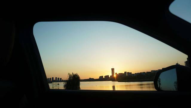 体验完赛车后,开到附近的湖边,正好赶上了一场绝美日落!
