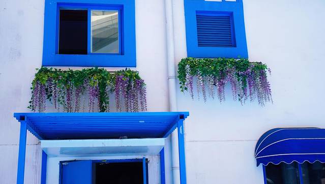 蓝白色相间的建筑,海滩风休闲椅,搭配热带绿植,红色灯塔,满满的希腊风情,在不能出国的今年,有木有格外惊喜!