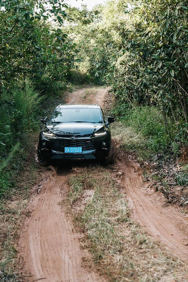 我们开的这款雪佛兰开拓者开起来还挺拉风,X型雷霆前脸设计、双Y型LED尾灯、21吋轮毂,看起来非常霸气。此外这款车有相当优秀的四驱系统,可以轻松在这种复杂路况里穿梭,动力充沛,富有驾驶乐趣!即使蜿蜒起伏的土路,依旧能稳稳的。而且这款车有13项尖端科技,能帮助判断潜在风险,即使遇到复杂地形也不用担心。