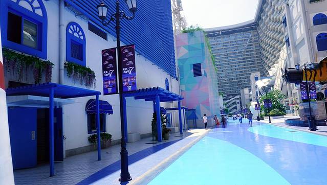 在成都环球中心,藏了片蓝白建筑,乍一看,让人误以为到了圣托里尼!