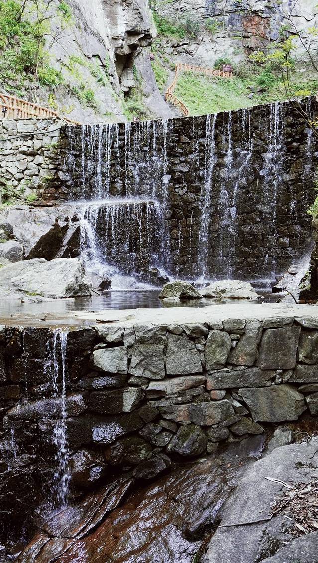 九影瀑为常年流水瀑布,终年不涸,瀑布水帘凌空而下,响声轰鸣,看到九影瀑我们真切体会到了李白的名句“飞流直下三千尺,疑是银河落九天”的真正含义。