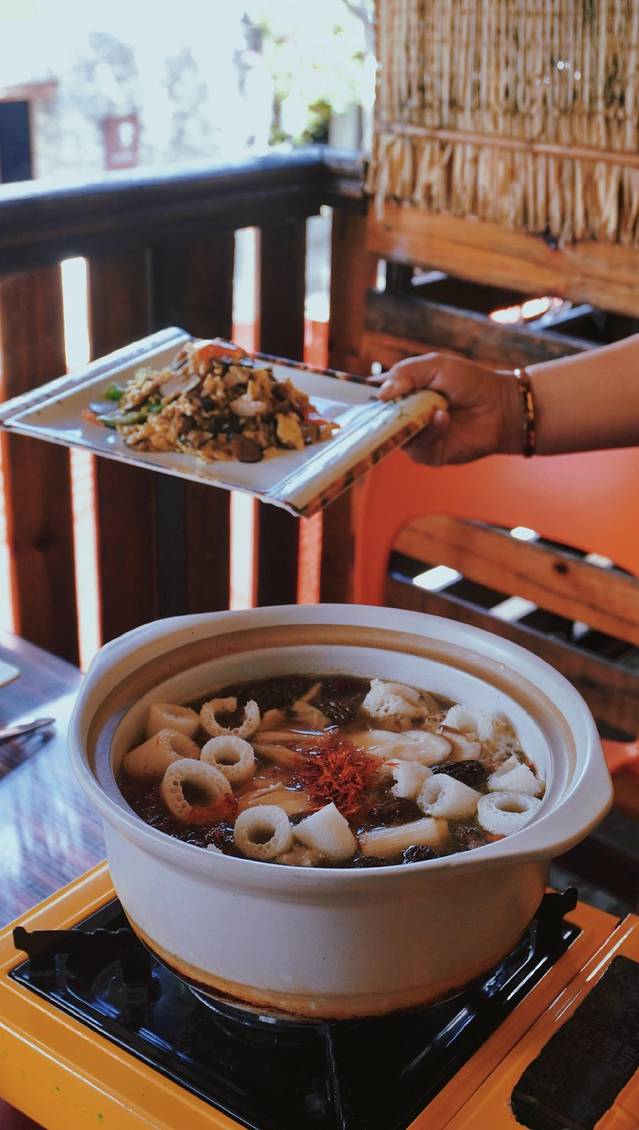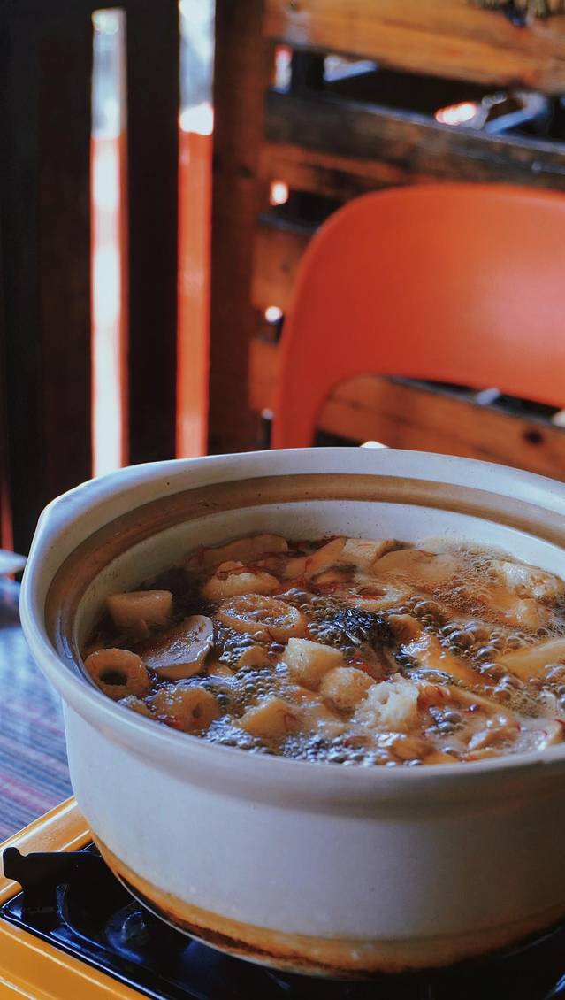 招牌菜野生菌腊排骨锅一定要来点上一份,鸡汤做锅底,加上松茸、竹笋、腊排骨一起熬煮,新鲜的食材进行碰撞,整个味蕾都是享受。
