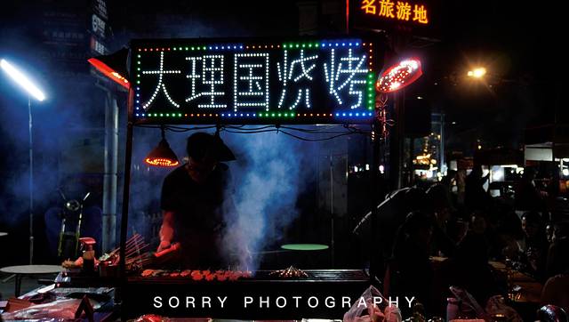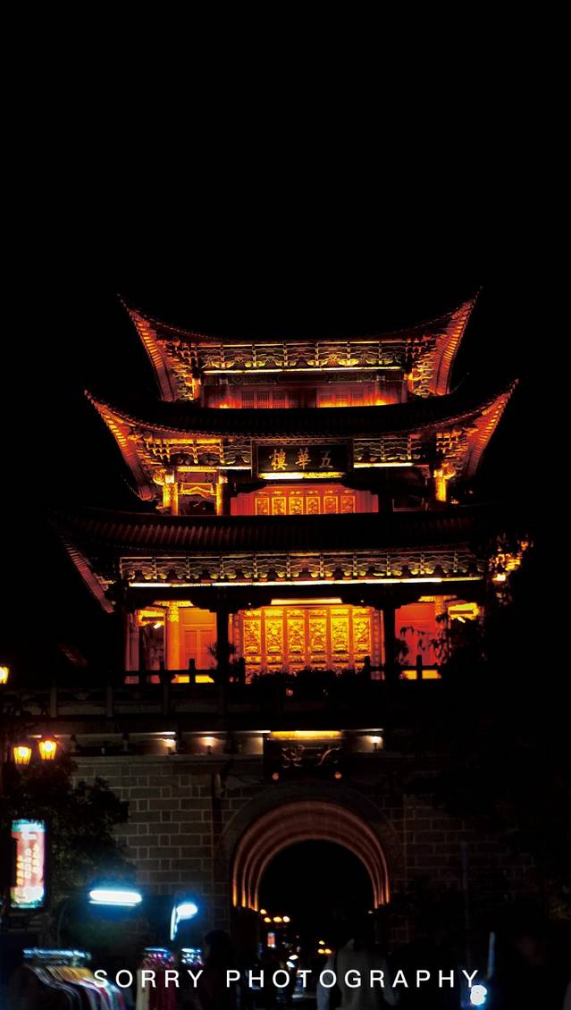 橙黄色的光游走在古老的建筑上,小吃摊也摆了起来,弹吉他的哥哥很帅,歌声在城楼的檐上弹跳