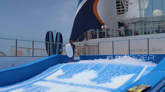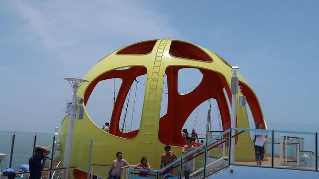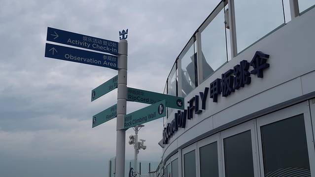 这个也是海洋光谱号上的热门项目,通过垂直的风洞产生气流,体验在游轮上空飞翔同时俯瞰海面的超凡体验。开始前由专业教练会进行指导,会穿着专业服装、确保安全,非常有趣的一个体验了!