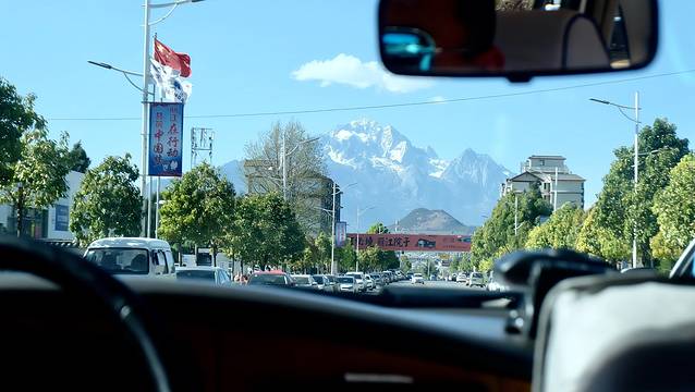 从丽江站打车去古城,一路上都能看到雪山,生活在这里的人一定很幸福吧!