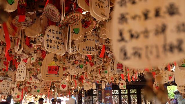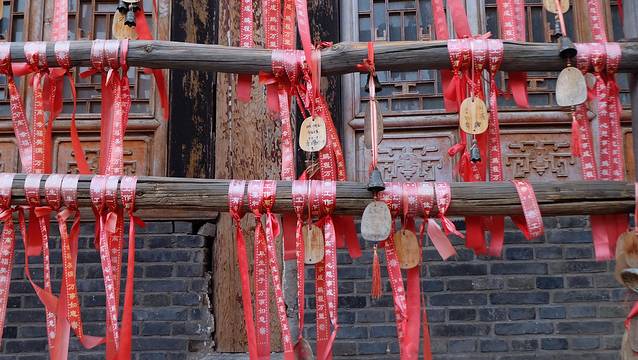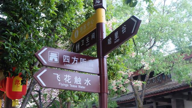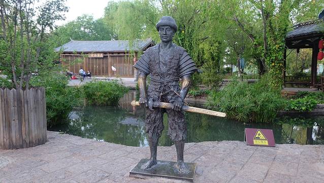 在大水车旁,有一个东巴许愿风铃长廊,东巴许愿风铃书写着世界上唯一存在的东巴图画象形文字。东巴文化是纳西族的传统文化,东巴许愿风铃,源于六百年前茶马古道上的马帮,丽江古城为茶马古道上的重镇,铃声给人们带来了吉祥和平安。正如所说“山间铃响马帮来”。是铃声报来了马帮的平安,是马帮带来了古城的繁荣。